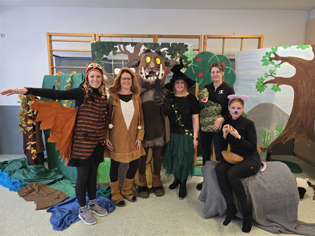 Die Erzieherinnen spielten das Theaterstück „Der Grüffolo“ für die Kinder.