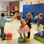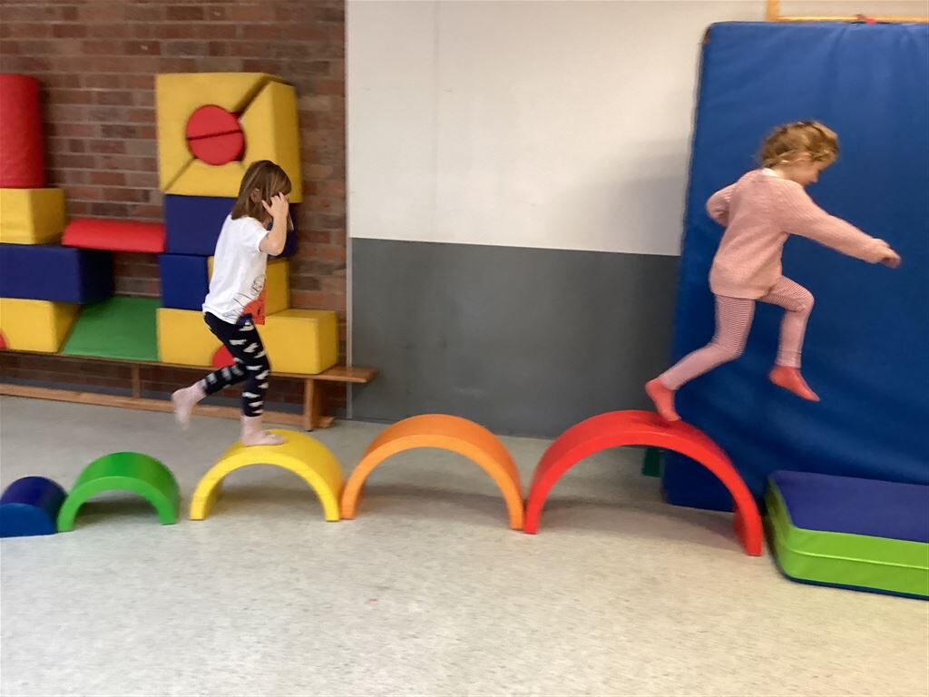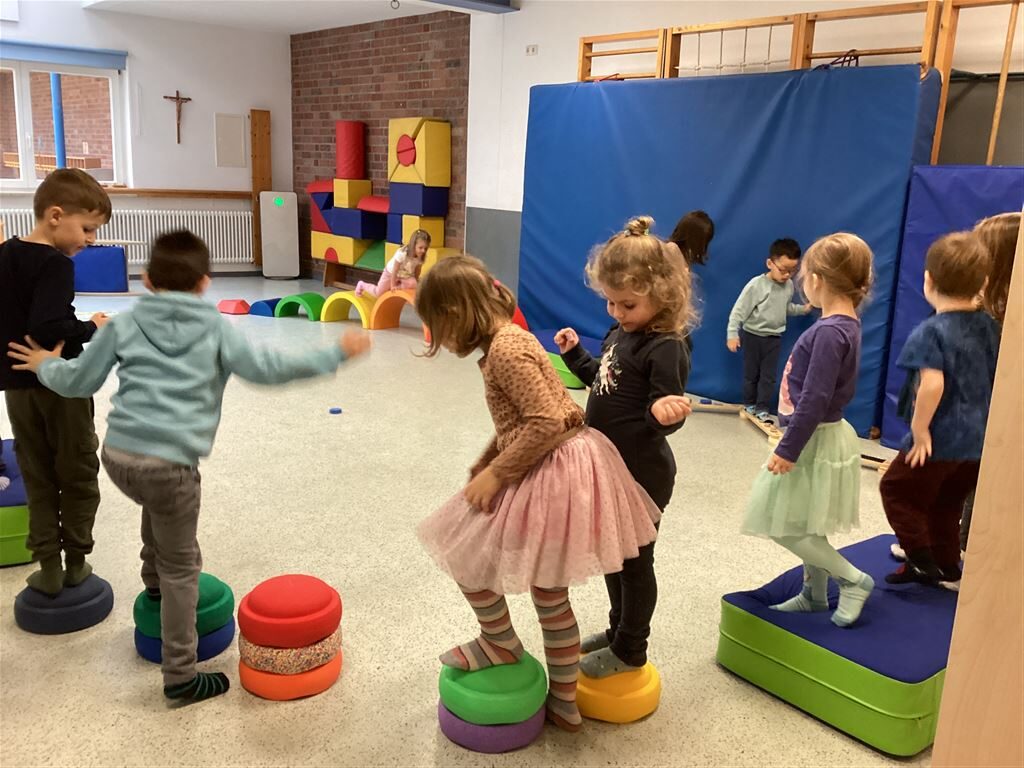 Viel Spaß haben die Kinder beim Balancieren über verschiedene Gegenstände. So können sie ihr Gleichgewicht schulen.
