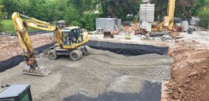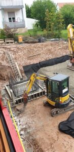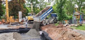 Mittwoch. 20. Mai: in die Baugrube kommt Schotter
