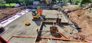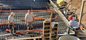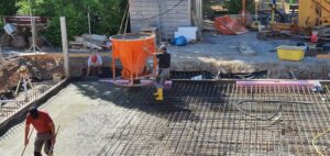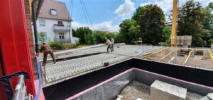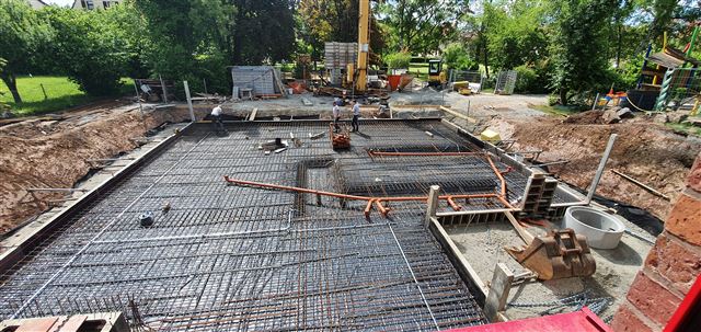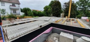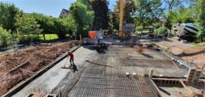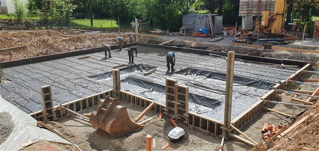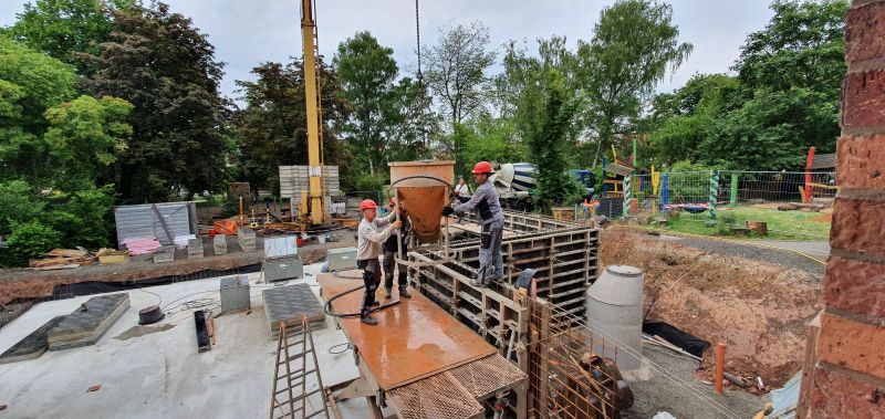 Dienstag, 2.Juni: die Bodenplatte wird gegossen