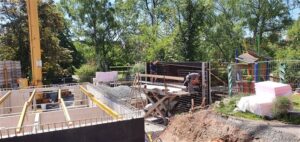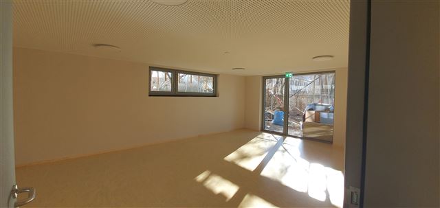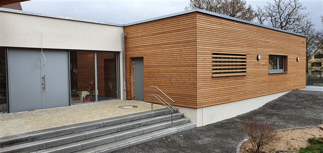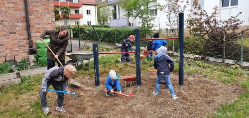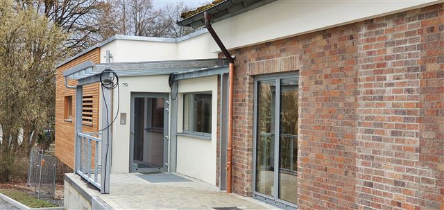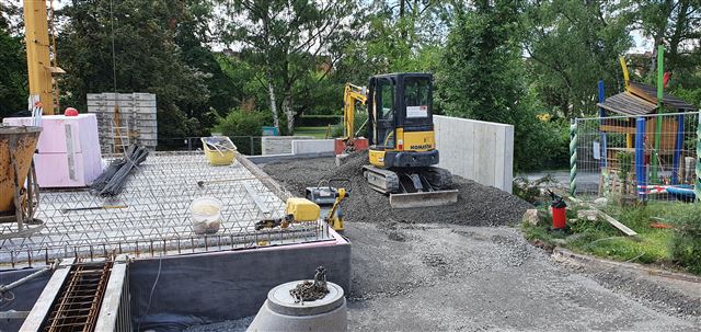 Der fast fertige Außenbereich des Krippenneubaus