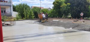 Montag, 25.Mai: Der Zementmischer ist da, das 1. Fundament wird gegossen und Schotter wird weiterhin eingefüllt