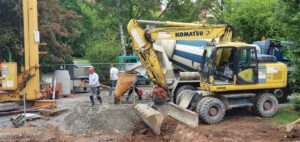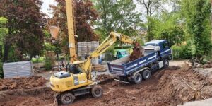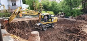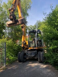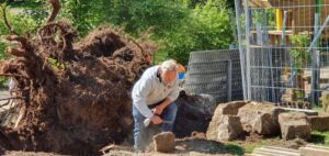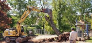 Donnerstag, 7.Mai: Den ganzen Tag wird gebaggert – auch ein Baum muss weichen