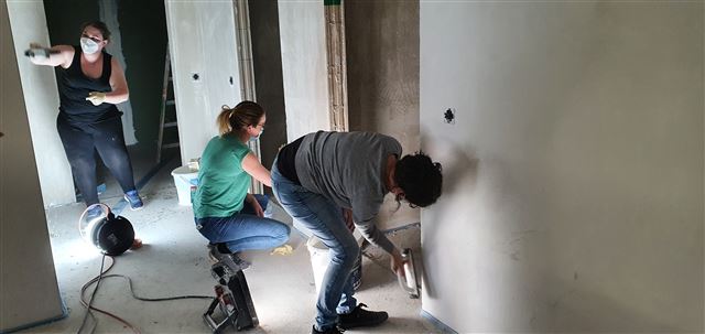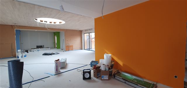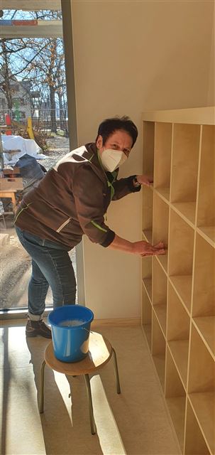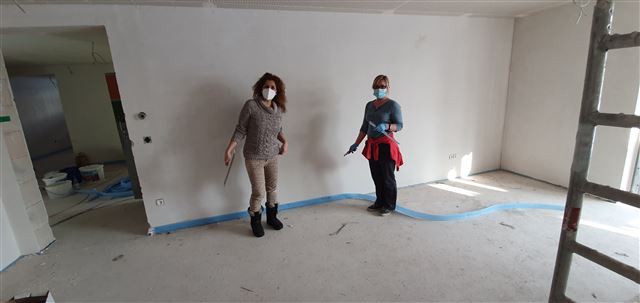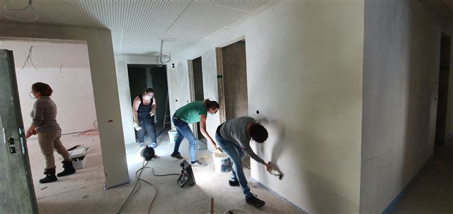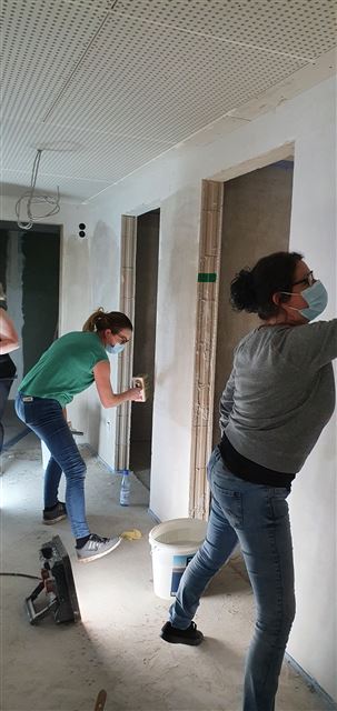 Dienstag, 9. Februar 2021 – Gemeinsam grundieren das Kindergartenpersonal mit der Hilfe einer Kindergartenmutter die Wände im Untergeschoss des Neubaus. Herzlichen Dank dafür, denn jetzt können die Maler kommen.