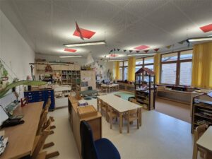 Im großen, hellen Atelier im Neubau können die Kinder ihrer Phantasie freien Lauf lassen. Beim freien Malen und Basteln sind ihrer Kreativität keine Grenzen gesetzt. Atelier